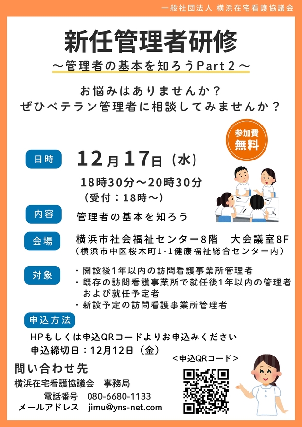 対象: 開設後1年以内の訪問看護事業所管理者